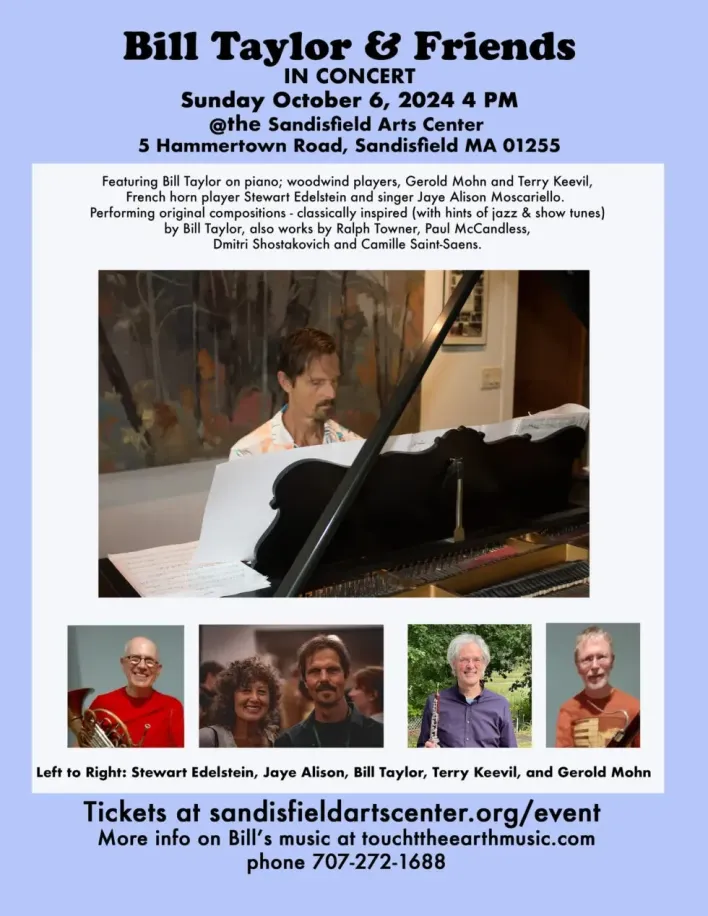 Performing original compositions – classically inspired (with hints of jazz & show tunes) by Bill Taylor, also works by Paul McCandless,